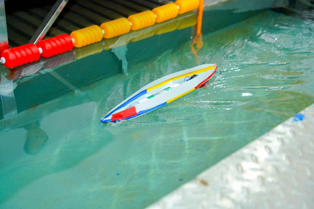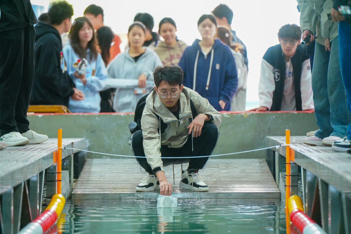 比赛过程中,各参赛队伍的航行器在水池中劈波斩浪,吸引了众多师生驻足观看,欢呼声此起彼伏。船模独具匠心的设计,展现了同学们的无限创意,选手间切磋技术、互相交流,共同进步,尽显竞技与合作的魅力。