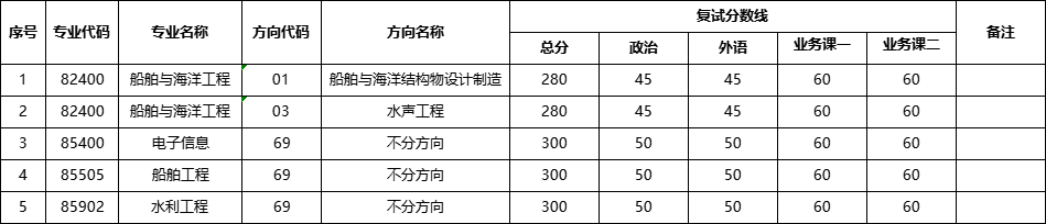 1.我院各专业(方向)复试分数线如下: