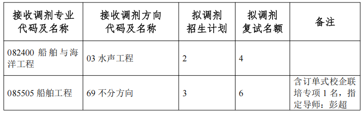2.报考085505船舶工程的考生,本科毕业专业为力学、船舶与海洋工程、海洋工程与技术、航空航天、控制科学与工程、机械、电子信息、土木水利、电气工程及自动化、人工智能、软件工程等相关理工科专业优先。