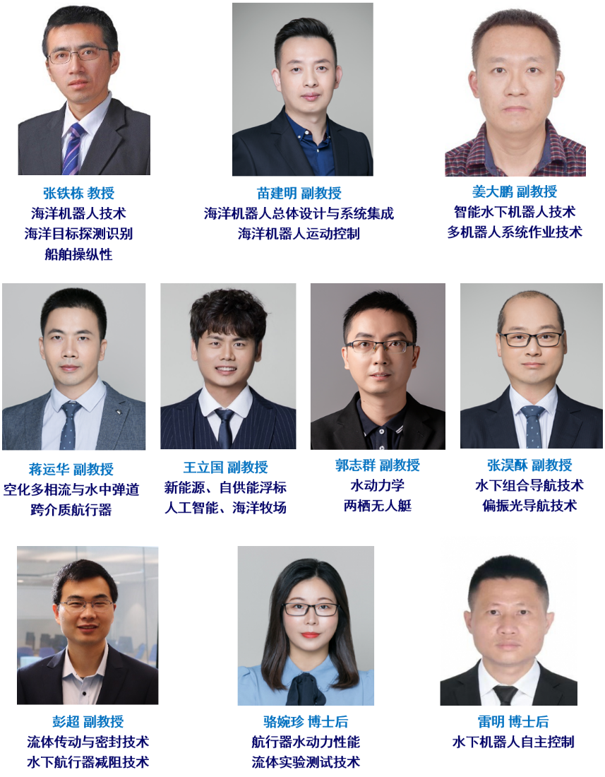 海洋机器人团队负责人为张铁栋教授,现有教职工10人,其中教授1人、副教授7人,专职科研人员(博士后)2人。