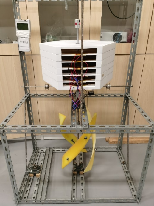 本作品提出了一种新型摩擦-电磁复合式潮流能发电装置,通过结合摩擦纳米发电机(TENG)以及电磁发电机(EMG)机理,搭载竖轴水轮机捕获潮流能,实现机械能到电能的转换。通过优化设计TENG的材料、结构、布局以及EMG磁性元件与线圈的布置方式,提高复合式发电装置的输出性能,突破了小型潮流能发电能量转换效率、工作带宽、工作时长和功率输出等瓶颈。