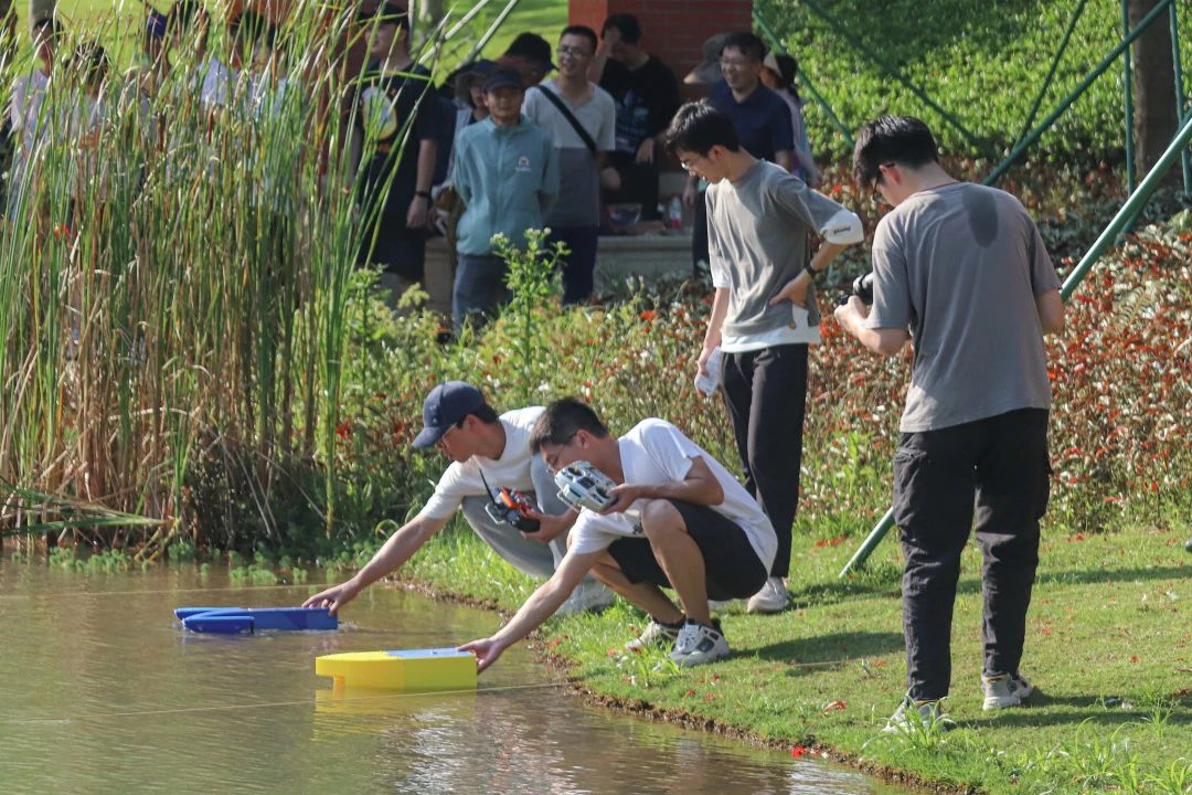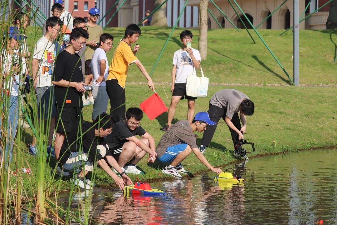为深入学习宣传贯彻党的二十大精神,全面展现我院学生的创新能力和专业素养,5月28日16:00,由中山大学水下机器人研究学社和我院学生会联合举办的首届无人艇自航模挑战赛拉开战幕,八支参赛队伍师生在琴湖集结,创新比拼在夏日的骄阳中正式开赛。