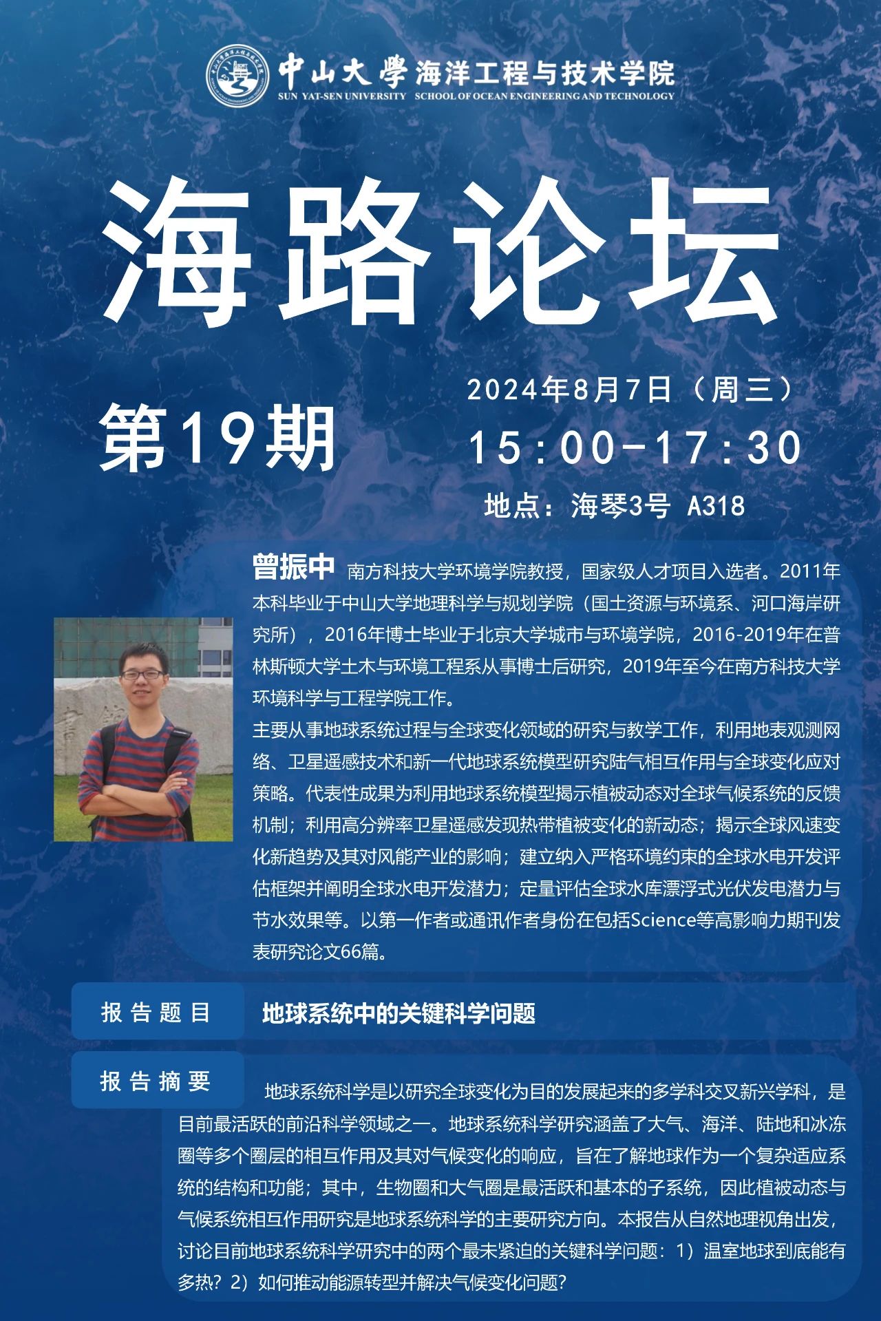 海路论坛第19期 | 曾振中教授:地球系统中的关键科学问题
